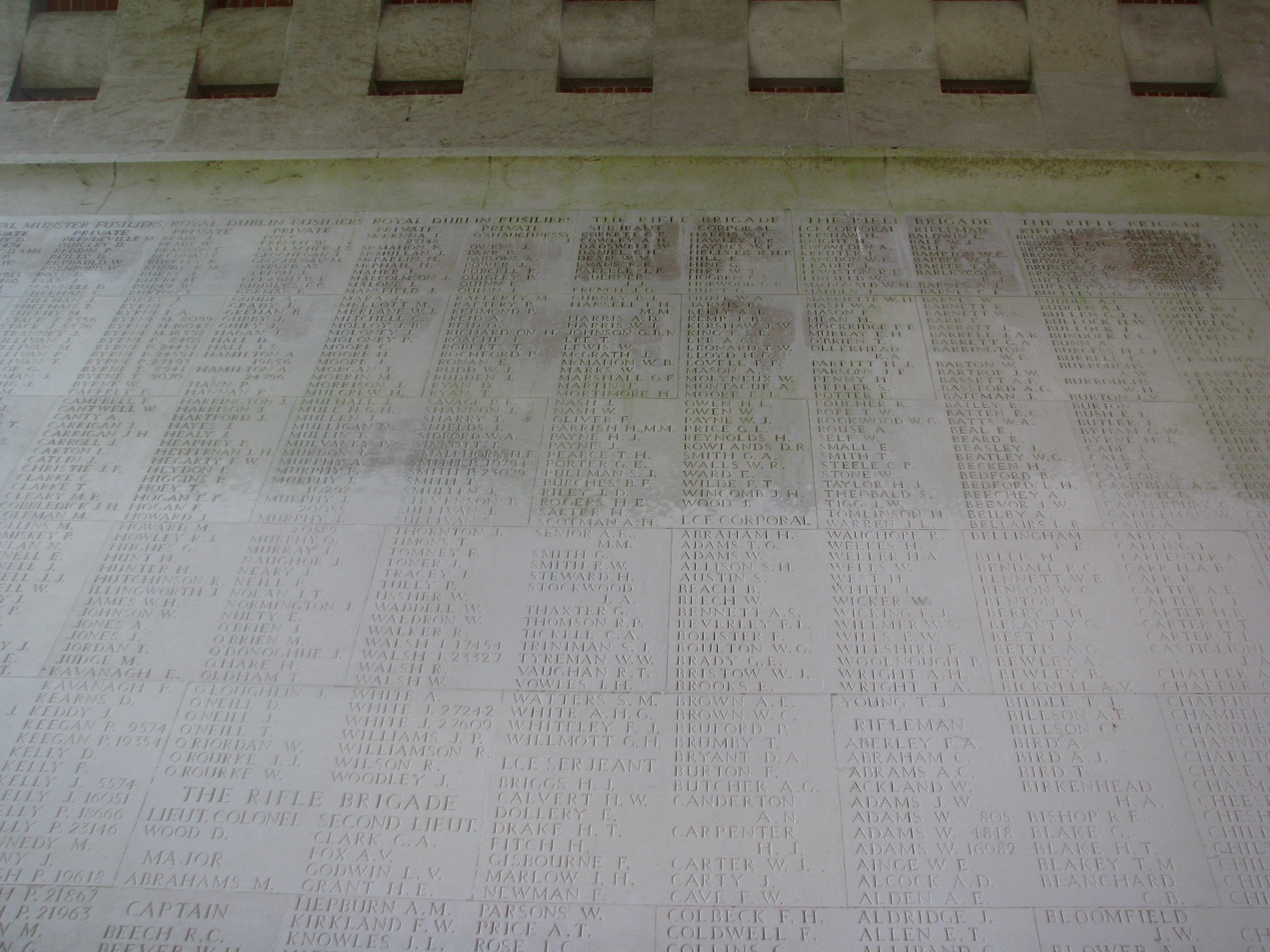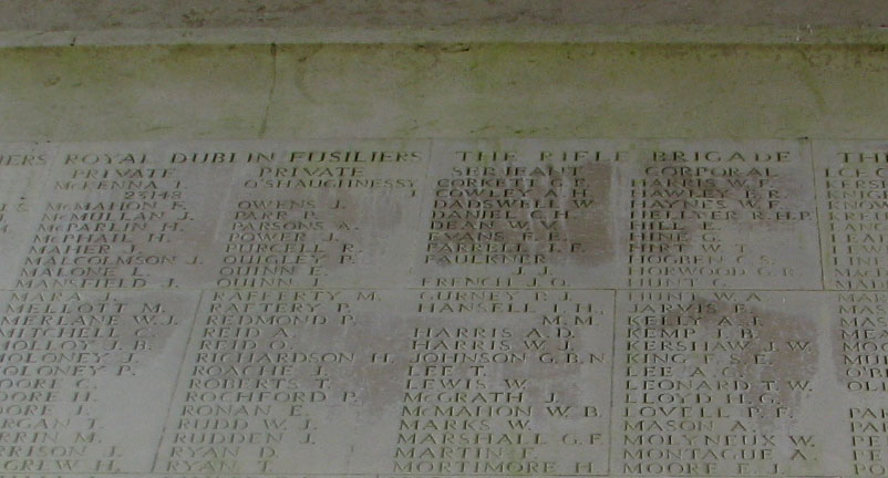 As I approach the Thiepval arch over a putting-green lawn, it occurs to me that the thing looks like a huge horseshoe magnet, held forever to the earth by the attraction of a million skeletons. (It is now estimated that there were 1,300,000 Allied and German casualties on the Somme in 1916.) In its central arch and numerous bays, there is the familiar sight of names upon names upon names, the ledgers of vertigo drawn up by a shamefaced establishment. Here, the stone letters spell out the names of the doomed soldiers of the British and South African armies (Australia, New Zealand, Canada, Newfoundland, and India built their own monuments to the missing) who died on the Somme in the years 1915-17 and whose bodies were never recovered or identified. There are 73,412 of them. The memorial’s inscription reads, “The Missing of the Somme”; it could jusst as well say the sum of the missing. The magnitude of the number is too large to comprehend, just as at the Menin Gate. Like there too, the trick of absolution through accountancy is attempted – only here it works. The spectator, lone and vulnerable on the Thiepval ridge, feels oppressed by the weight of the engraved stone, as if it got there through some insensate natural force, ordained by an unkind universe rather than by the blunders of the powerful.